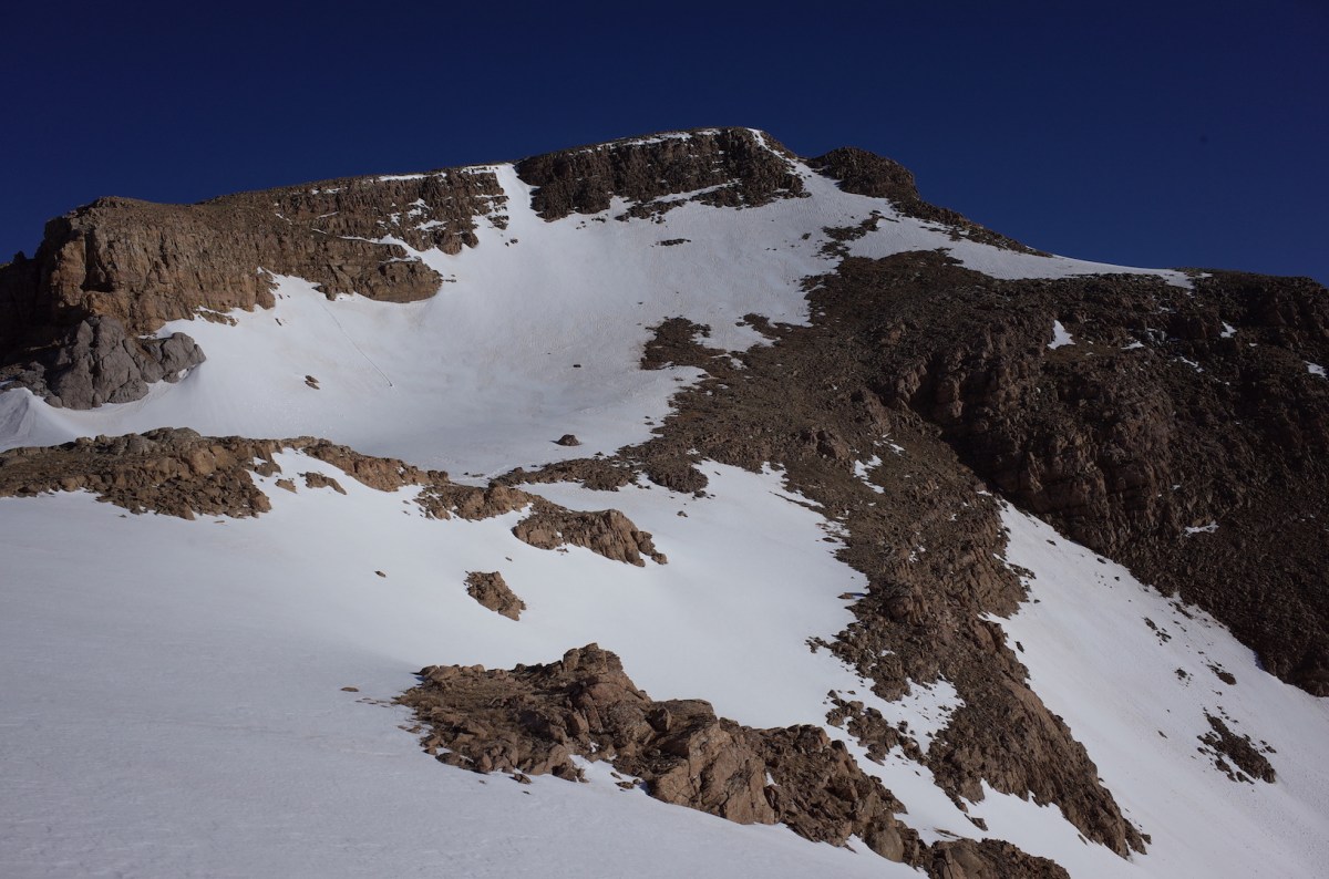 R0003594 Publié 4 juillet 2017 à 1631 × 1080 dans Peña Telera (2764m) ← Précédent Suivant → Le couloir de neige de descente, bien visible presque au milieu en haut