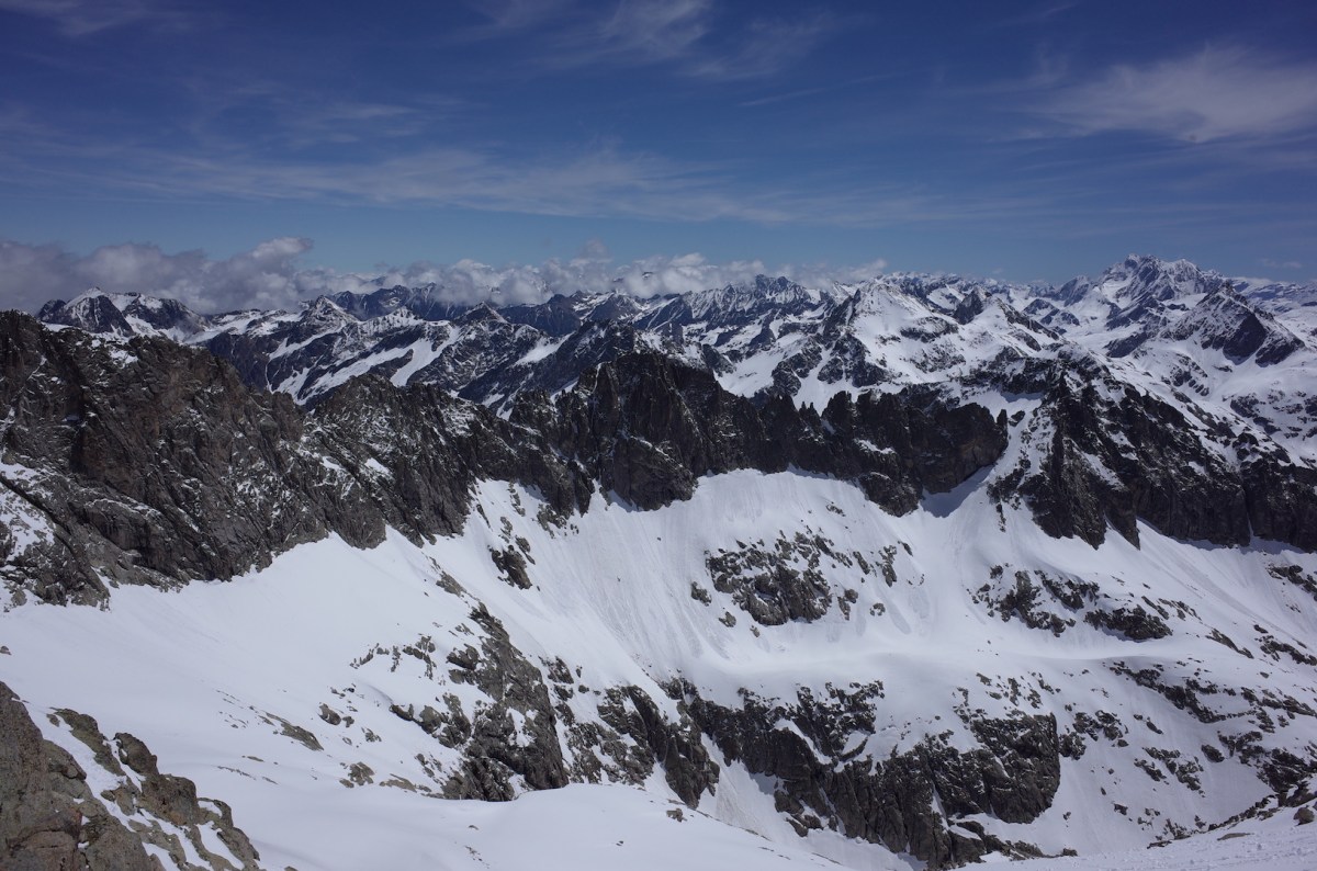 R0003690 Publié 24 Mai 2017 à 1631 × 1080 dans Frondellas, Aiguille Cadier, Balaïtous et Pic de Cambales ← Précédent Suivant → Costerillou à gauche, crête du Diable, Vignemale à droite au fond