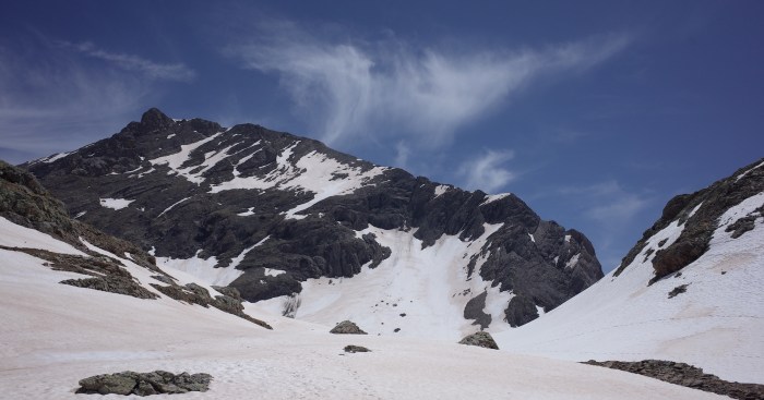 Le retour se fait en direction de la vallée du Rio Barrosa (autre accès possible du sommet) puis en contournant ensuite le Chinipro pour revenir vers la vallée du refuge de la Larri. Le chemin n’est pas clair (pourtant, c’est le GR11), les cairns inexistants et le plus simple semble d’arpenter les pentes herbeuses au plus direct.